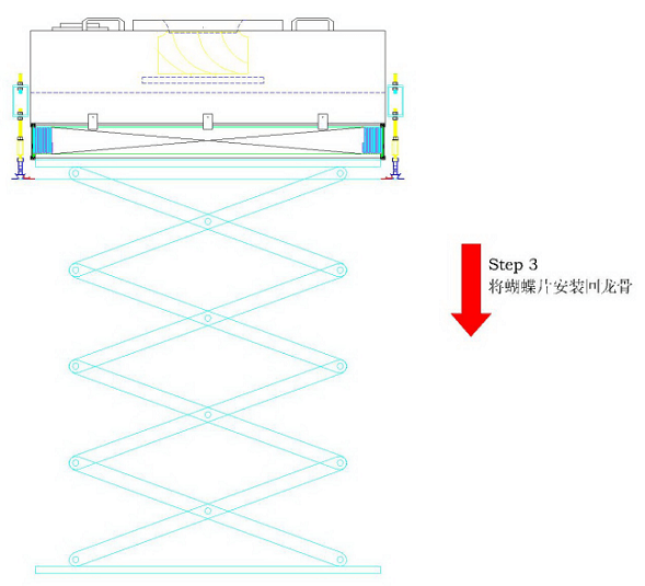 FFU安裝指導(dǎo)指南步驟4:使用升降機慢慢將FFU整體放至蝴蝶片上,如下圖所示:
