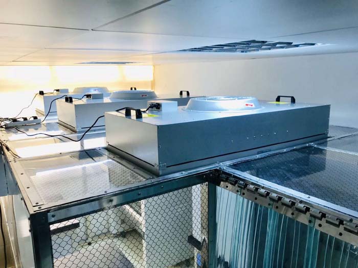 潔凈棚高效過濾單元2設(shè)置在風(fēng)機1下方,與風(fēng)機1緊密相連,高效過濾單元2可根據(jù)不同客戶的實際需要選擇不同的凈化級別,在高精科技的生產(chǎn)研發(fā)中,比如在半導(dǎo)體工業(yè)中,一般采用凈化級別很高的PTFE超高效過濾器;