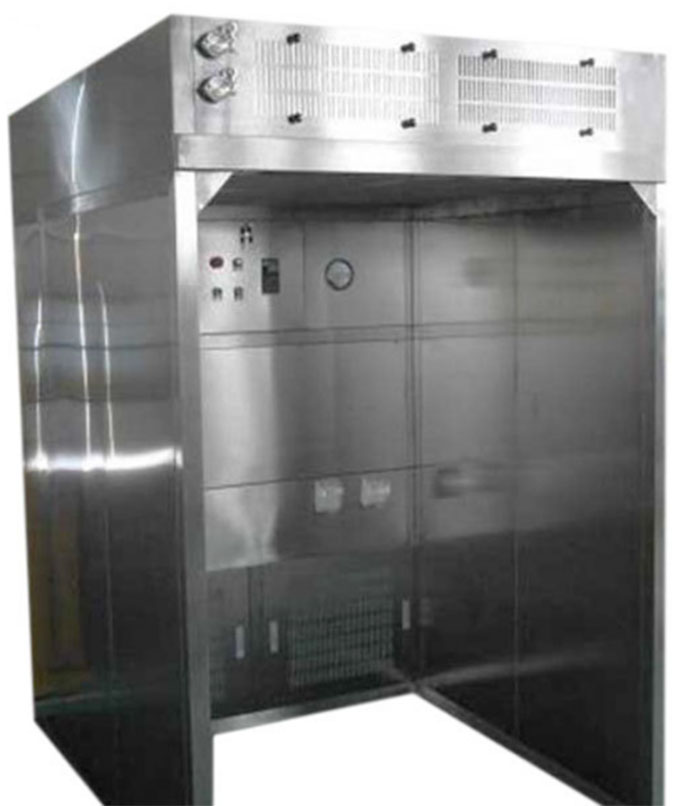 在離心風(fēng)機(jī)提供的壓力下,通過高效過濾器,使之達(dá)到潔凈要求。潔凈氣流被送至送風(fēng)箱體內(nèi),90%通過均流送風(fēng)網(wǎng)板,形成均勻的垂直送風(fēng)氣流,10%則通過風(fēng)量調(diào)節(jié)板,排出設(shè)備。所有氣流均經(jīng)過高效過濾器處理,所以送風(fēng),排風(fēng)均不帶殘余粉塵,避免了二次污染。由于在工作區(qū)域形成穩(wěn)定的單向流,在此區(qū)域中散發(fā)的粉塵,會(huì)在單向氣流的影響下,隨著氣流而被初、初效過濾器所捕集。設(shè)備帶有10%的排風(fēng),從而形成相對(duì)與外部環(huán)境的負(fù)壓,從一定程度上保證了此區(qū)域內(nèi)的粉塵不會(huì)擴(kuò)散至室外,起到保護(hù)外部環(huán)境的作用。