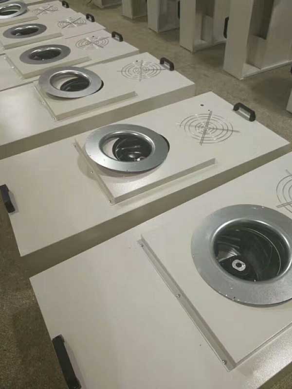 ffu風(fēng)機(jī)過濾器單元也可用于潔凈室末端送風(fēng)。ffu風(fēng)機(jī)過濾單元產(chǎn)品設(shè)有初效過濾器、高效過濾器兩級過濾裝置。風(fēng)機(jī)從頂部將空氣吸入并經(jīng)初、高效過濾器過濾,過濾后的潔凈空氣在整個(gè)出風(fēng)口送出。安裝方式有懸掛式和落地支架兩種。