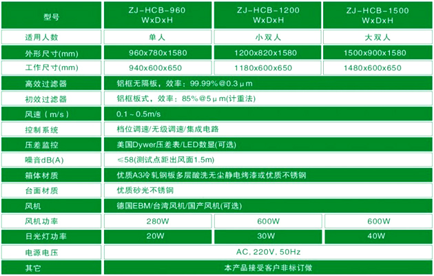 梓凈水平流超凈工作臺(tái)技術(shù)參數(shù)