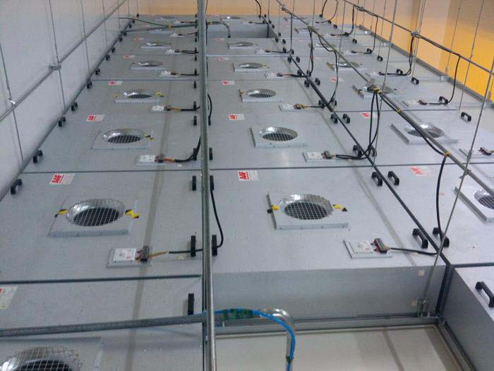FFU是一個自帶送風(fēng)機(無殼風(fēng)機)的高效過濾器送風(fēng)口,它與其專用龍骨系統(tǒng)、加壓風(fēng)機、冷卻盤管、新風(fēng)系統(tǒng)以及專用燈具共同組成了FFU系統(tǒng)。也就是將風(fēng)機和過濾器(高效過濾器或超高效過濾器)組合在一起構(gòu)成自身能提供動力的末端凈化設(shè)備。過去在潔凈工程中常用的帶風(fēng)機的高效過濾器的送風(fēng)口,自凈器,層流罩等都是FFU的一種。在選擇及安裝FFU應(yīng)注意以下問題。