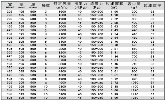 過濾效率:G1:40%@5.0μm、G2:65%@5.0μm、G3:85%@5.0μm、G4:90%@5.0μm(計(jì)重法);