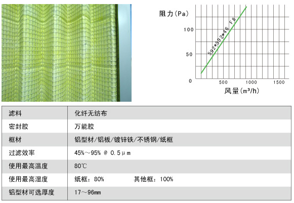 過濾效率:45%~95%@1微米