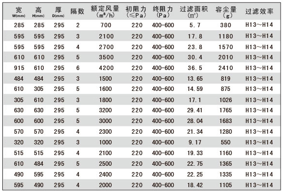 組合式耐高濕高效空氣過(guò)濾器技術(shù)參數(shù)