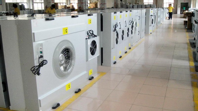 FFU風(fēng)機(jī)濾網(wǎng)機(jī)組可模塊化連接使用,使用FFU廣泛應(yīng)用于潔凈室、潔凈棚、潔凈工作臺、潔凈生產(chǎn)線、組裝式潔凈室和局部百級等應(yīng)用場合。FFU設(shè)有初、高效兩 級過濾網(wǎng)。風(fēng)機(jī)從FFU頂部將空氣吸入并經(jīng)初、高效過濾器過濾,過濾后的潔凈空氣在整個(gè)出風(fēng)面以0.45M/S±20%的風(fēng)速勻速送出。適用于在各種環(huán)境中獲得高級別的潔凈環(huán)境。它為不同尺寸大小,不同潔凈度等級的潔凈室、 微環(huán)境提供高質(zhì)量的潔凈空氣。在新建潔凈室、潔凈廠房式改造翻新中,即可提高潔凈度級別,降低噪音和振動(dòng),也可大大降低造價(jià),安裝維護(hù)方便,是潔凈環(huán)境的理想部件。